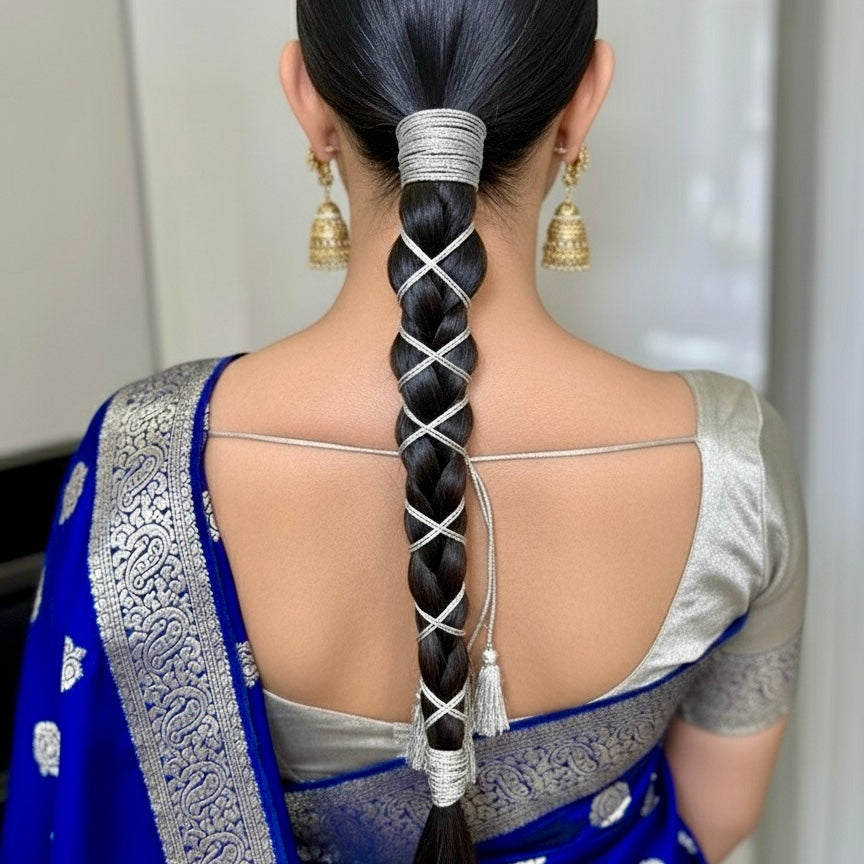Add a touch of elegance to your traditional hairstyles with our Silver Hair Lace for Braid (2.5 MTR pack). Crafted with shimmer threads, this hair lace is perfect for wrapping around braids, buns, or festive hairstyles. Whether it’s a wedding, puja, or festive celebration, this versatile lace instantly elevates your look with a graceful metallic finish. Add this timeless accessory to your festive styling essentials and shine with every strand!